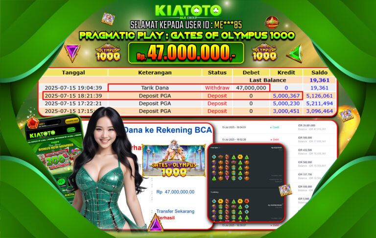 BUKTI JACKPOT KIATOTO – PRAGMATIC PLAY Rp. 47,000,000