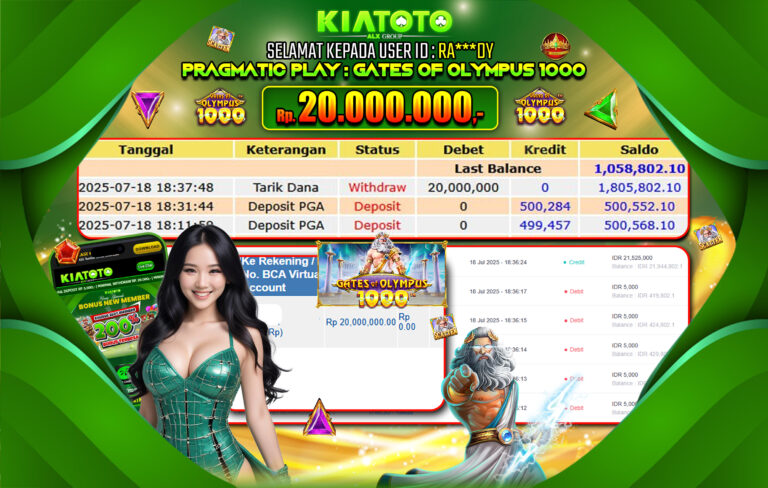 BUKTI JACKPOT KIATOTO – PRAGMATIC PLAY Rp. 20,000,000