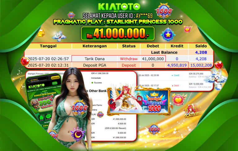 BUKTI JACKPOT KIATOTO – PRAGMATIC PLAY Rp. 41,000,000