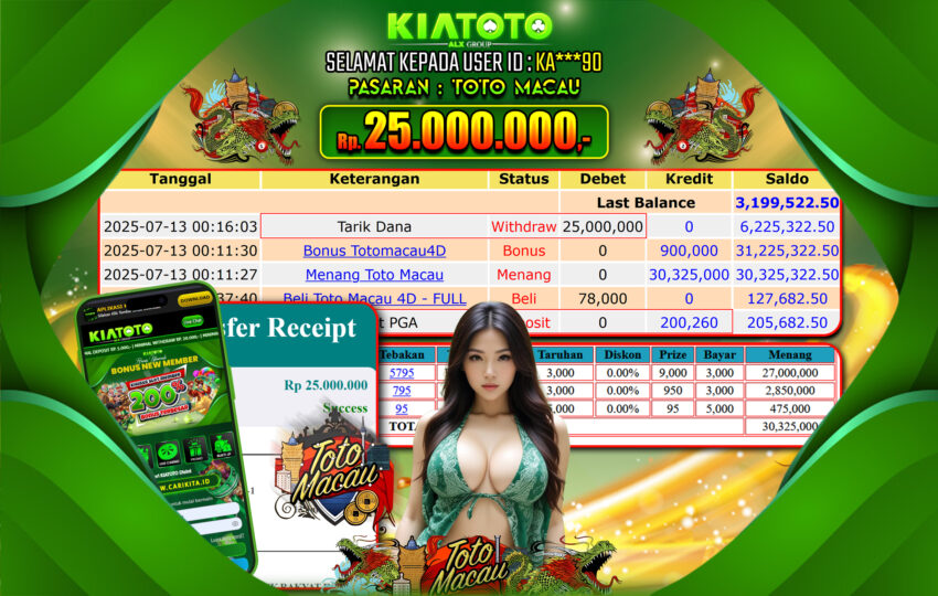 BUKTI JACKPOT KIATOTO – TOTO MACAU Rp. 25,000,000