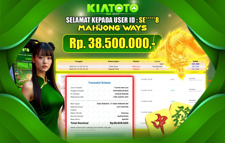 BUKTI JACKPOT KIATOTO – POCKET GAME SOFT Rp. 38,500,000
