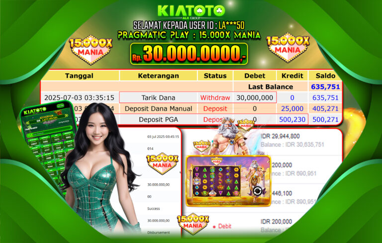 BUKTI JACKPOT KIATOTO – PRAGMATIC PLAY Rp. 30,000,000