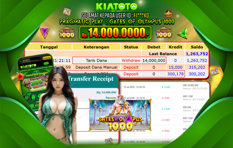 BUKTI JACKPOT KIATOTO – PRAGMATIC PLAY Rp. 14,000,000