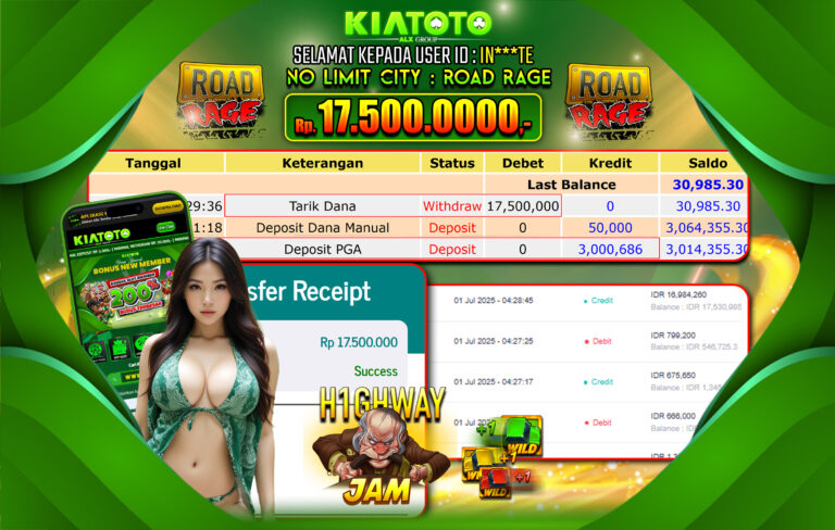 BUKTI JACKPOT KIATOTO – NO LIMIT CITY Rp. 17,500,000