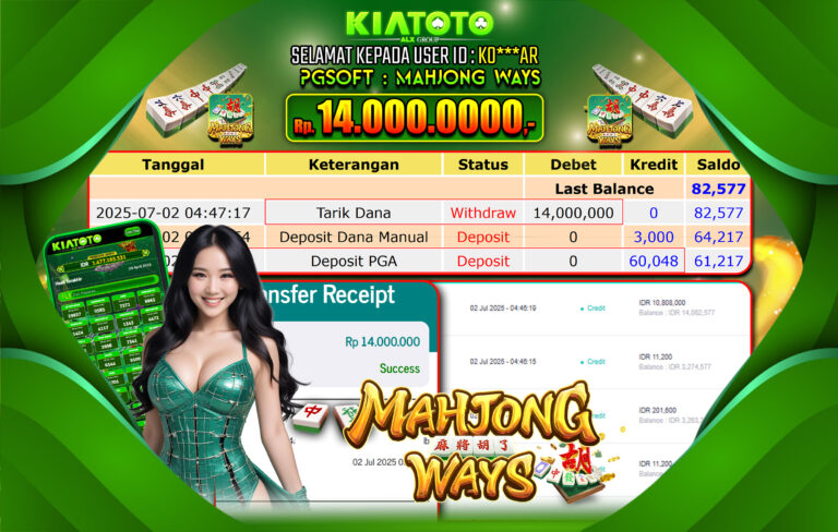 BUKTI JACKPOT KIATOTO – POCKET GAME SOFT Rp. 14,000,000
