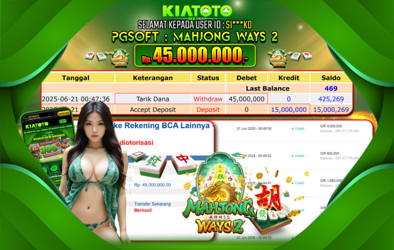 BUKTI JACKPOT KIATOTO – POCKET GAME SOFT Rp. 45,000,000