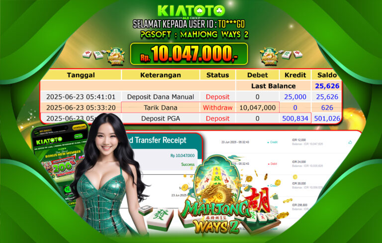 Selamat Datang di Website BUKTI JACKPOT KIATOTO Di website ini, kami akan memberikan bukti pembayaran yang telah kami kirimkan kepada member KIATOTO yang berhasil mendapatkan Jackpot. Tentang KIATOTO KIATOTO adalah situs bandar Togel Online, Live Casino, dan Slot Online terpercaya di Indonesia. Kami telah lama menjadi penyedia layanan taruhan online yang aman dan dapat diandalkan….