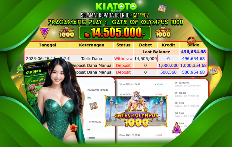 BUKTI JACKPOT KIATOTO – PRAGMATIC PLAY Rp. 14,505,000