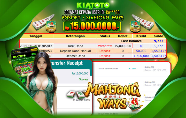 BUKTI JACKPOT KIATOTO – POCKET GAME SOFT Rp. 15,000,000