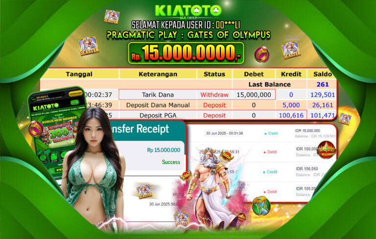 BUKTI JACKPOT KIATOTO – PRAGMATIC PLAY Rp. 15,000,000