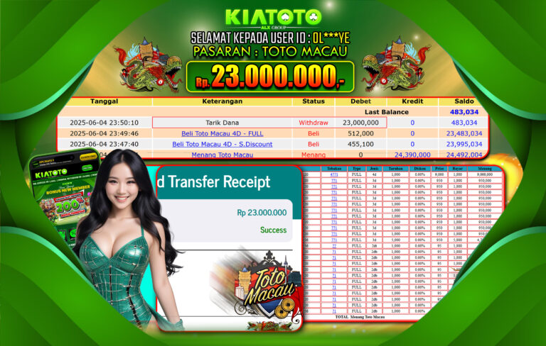 BUKTI JACKPOT KIATOTO – TOTO MACAU Rp. 23,000,000
